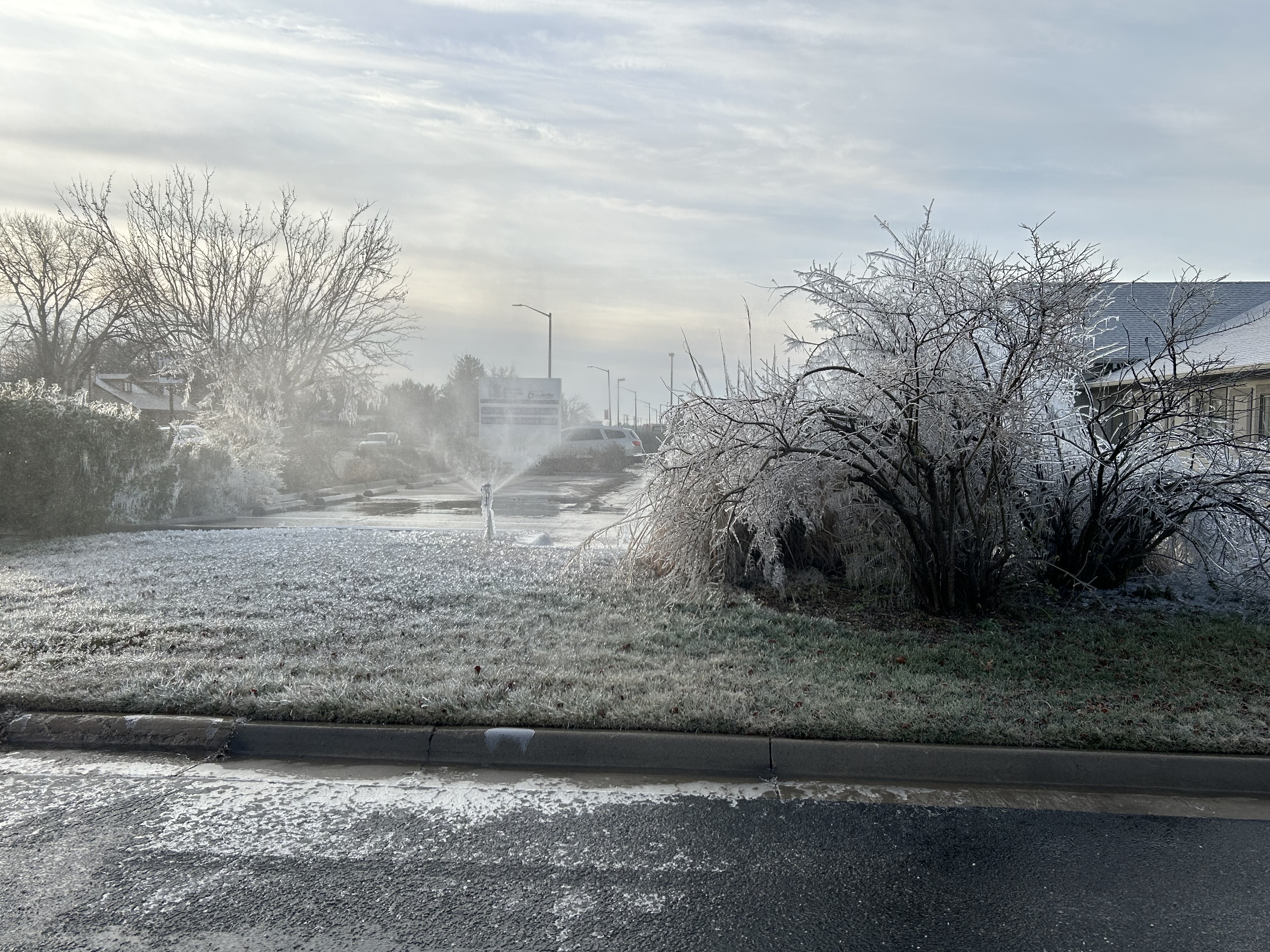 The ice covered sprinkler system had become a frigid fountain spraying ice pellets across the landscape. The frozen scenery was due to a lack of proactive priorities as much as it was the freezing temperatures.